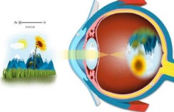 Er gebeurt ongeveer hetzelfde bij onze ogen ons oog heeft ook een lens die bol is (een bolle lens dus). Zoals u op de foto hieronder kan zien gaan de lichtstralen door de lens in onze oog en worden die convergent afgebroken waardoor er een beeld gevormd wordt. De lens van onze ogen kan afplatten of opbollen en zo kunnen wij voorwerpen die ver zijn maar ook voorwerpen die dichtbij zijn goed zien. En je moet niet vergeten dat het beeld ondersteboven is, maar gelukkig regelen onze hersenen dat het beeld wordt omgedraaid, anders zouden wij alles ondersteboven zien.